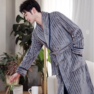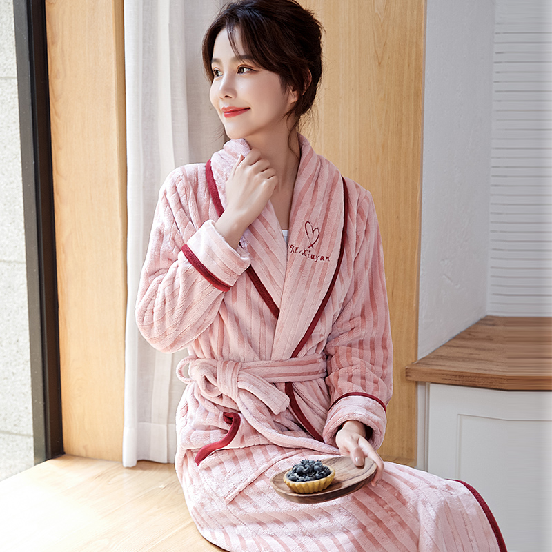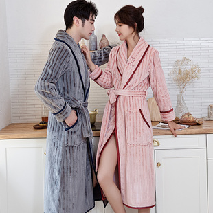睡袍女秋冬保暖珊瑚绒情侣睡衣春秋睡裙长款 浴袍 男法兰绒女士冬季