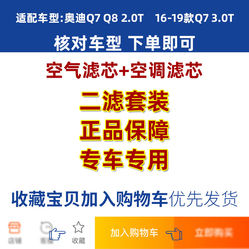 空气滤芯 空调滤清器 格空滤 3.0T 2.0T 适配奥迪Q7 19款