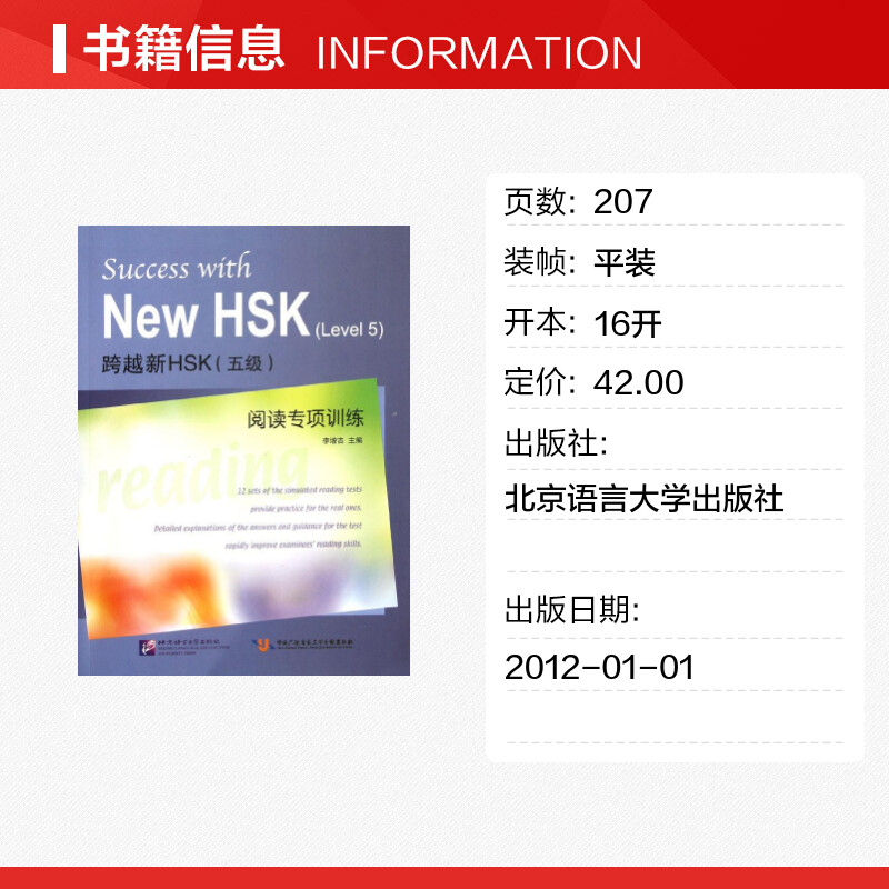 语言文字文教 社 阅读专项训练 北京语言大学出版 图书籍 新华书店正版 著 编 李增吉 五级 跨越新HSK