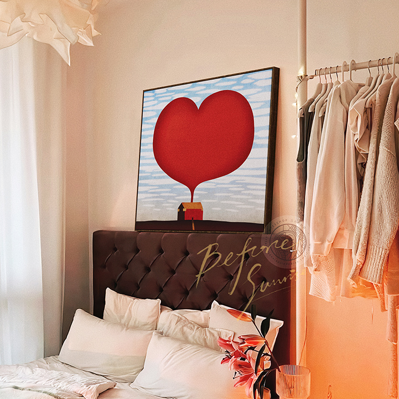 饰画温馨卧室床头壁挂画情人节生日礼物 北欧原木风客厅装 心屋