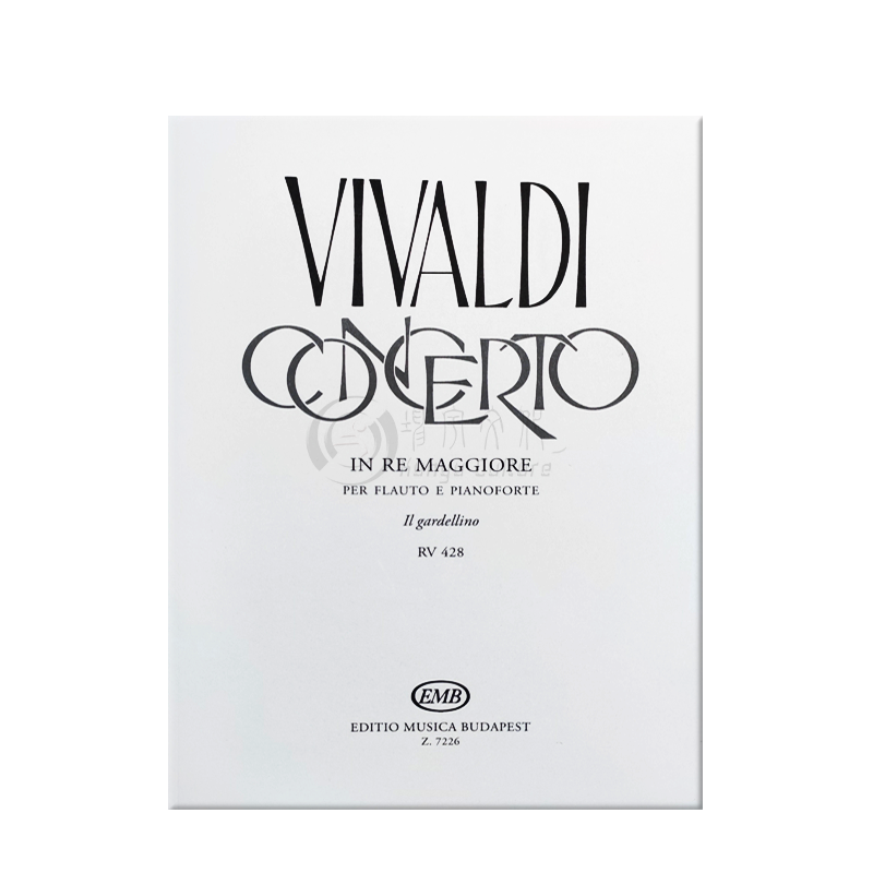 Vivaldi Piano D大调协奏曲 Concerto 乐谱书 长笛和钢琴 Flute Gardellino Major 布达佩斯原版 for RV428 维瓦尔第 Z7226