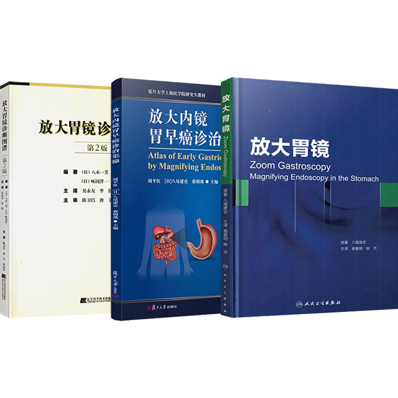 放大胃镜诊断图谱 放大内镜胃早癌诊治集锦 消化内镜学书籍胃镜学标准检查图谱放大胃镜观察技巧早期胃癌诊断标准 3本放大胃镜 正版