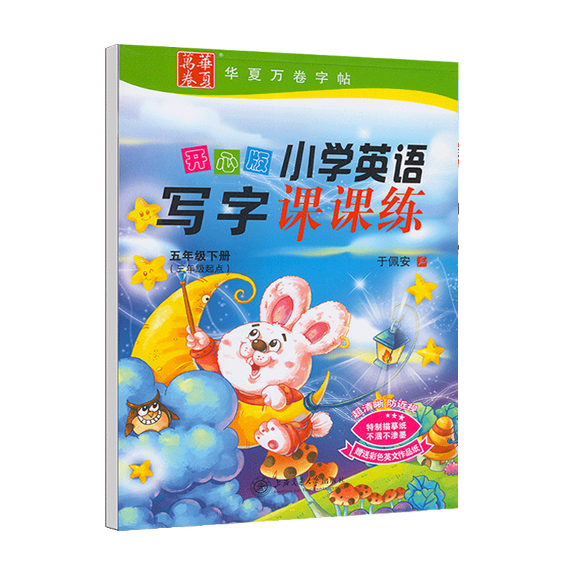 华夏万卷小学英语写字课课练五年级下册开心版 于佩安三年级起点同步教材课本小学生5年级下学期临摹钢笔字帖 广东人民粤人版