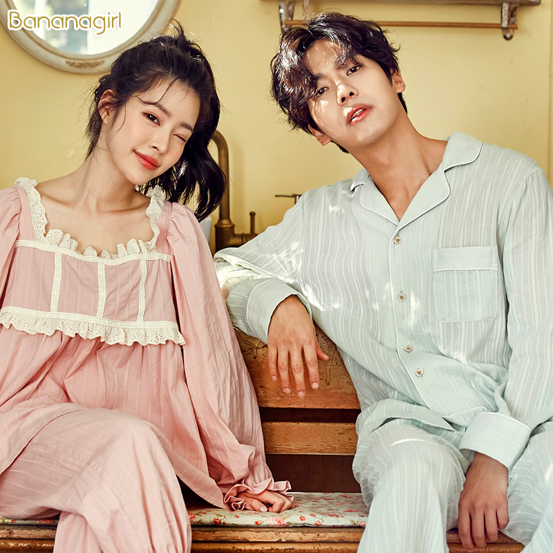 Bananagirl睡衣女春秋纯棉长袖 甜美公主风ins家居服男夏 情侣韩版