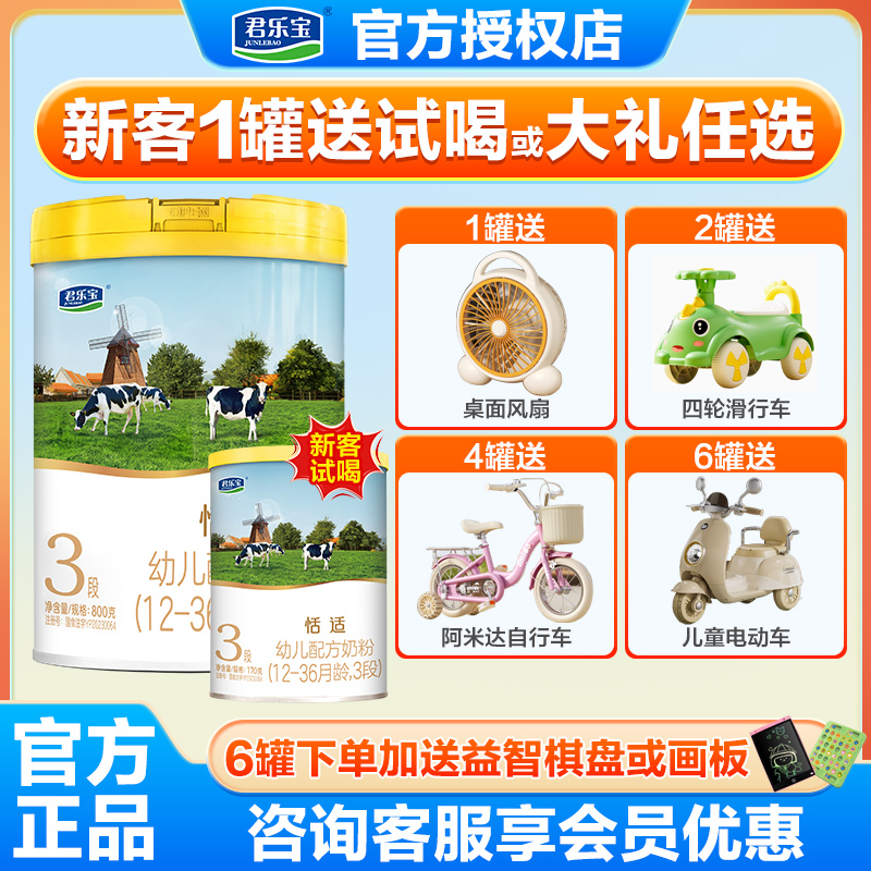 君乐宝恬适奶粉3段1 36个月三段乳铁蛋白800g 3岁婴幼儿牛奶粉12