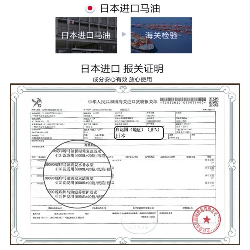 日本原装 沐浴马油脂洗发露补水清爽600ML 进口蝶印洗发水洗护套装