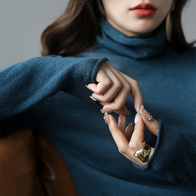 女士秋冬卷边洋气针织毛衣 2025年内搭高领打底衫 堆堆领羊毛衫 新款