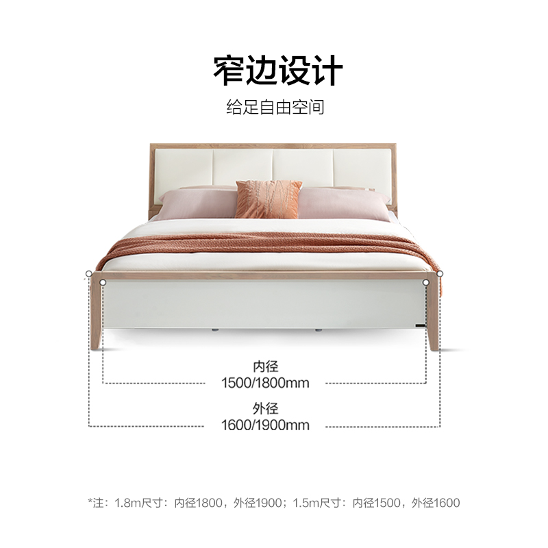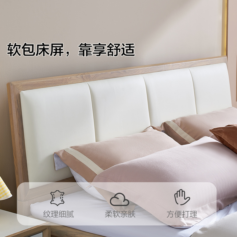 全友家居北欧次卧出租屋软包床实木框架小户型1米5板式 单人床家具