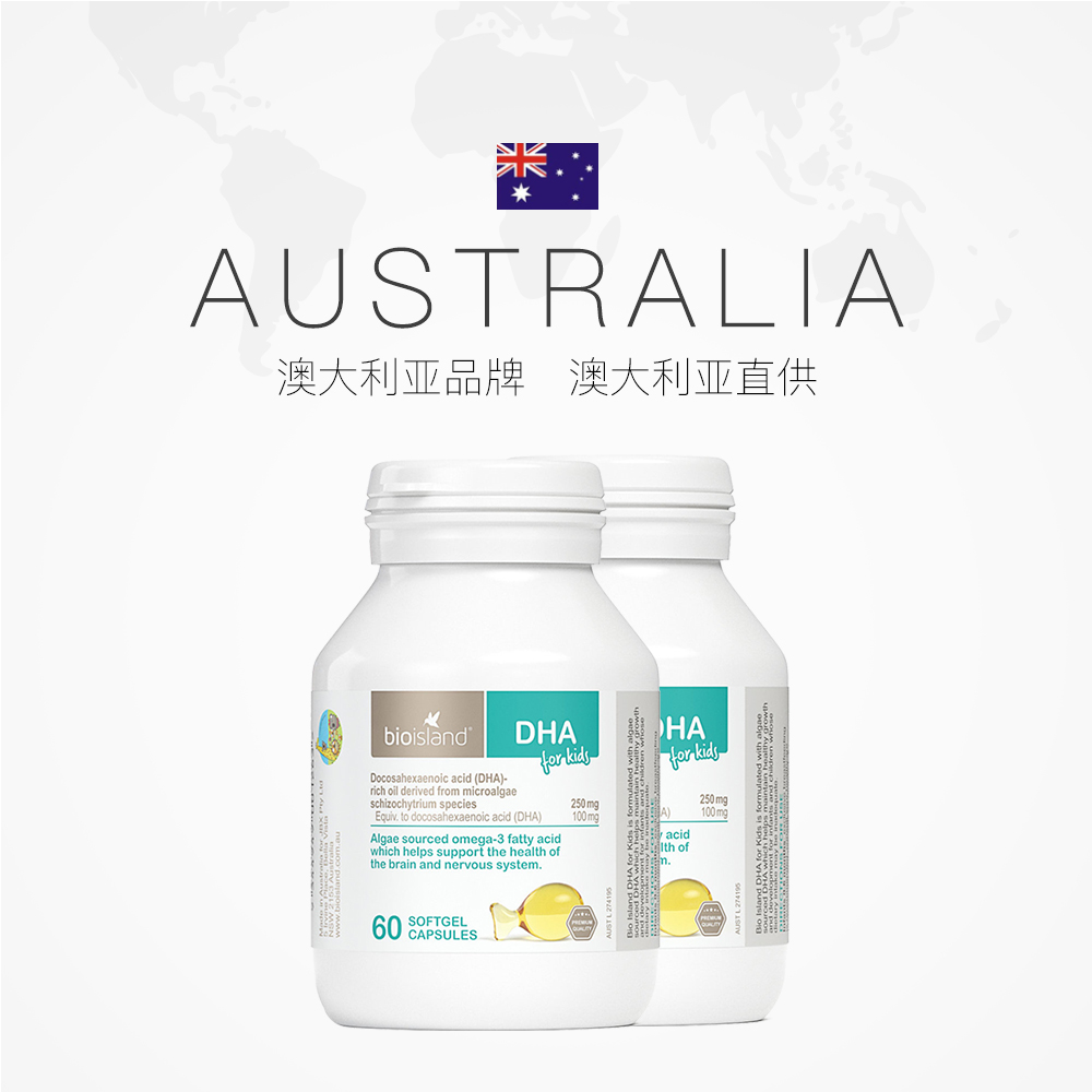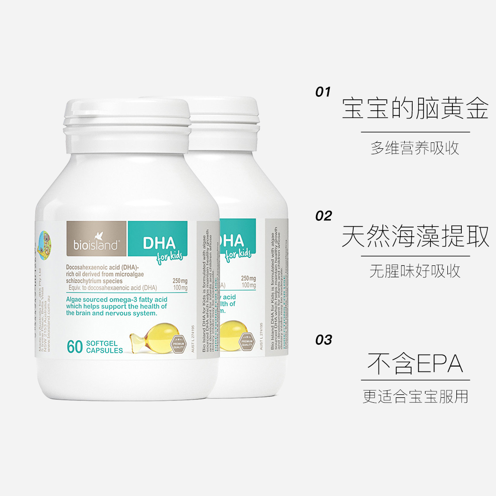 2瓶 bioisland佰澳朗德海藻油DHA藻油胶囊婴儿宝宝60粒 自营
