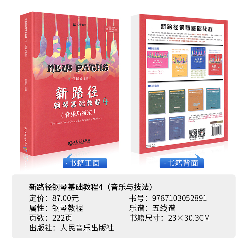 社 琴钢琴谱流行曲钢琴书幼儿童成人练习世界但昭义人民音乐出版 新路径钢琴基础教程 4音乐与技法下大音符彩色版