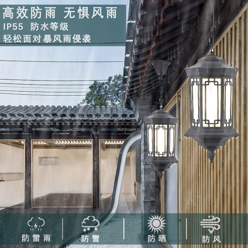 吊灯户外防水花园走廊新中式 复古阳台大门凉亭太阳能屋檐小庭院灯