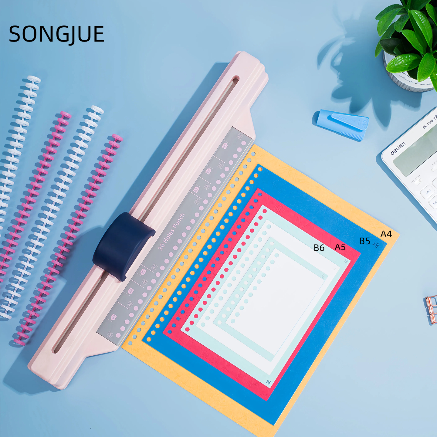 淞爵SONGJUE文具办公手推式 订笔记资料文件工具7张 30孔A4活页纸自动定位快捷精准专业多孔打孔器DIY手帐8孔装
