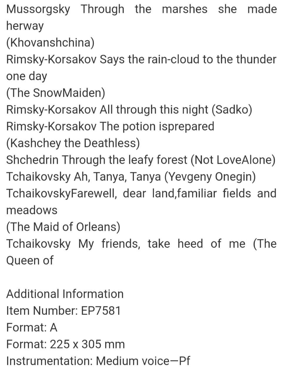 女中音 EP7581 Soprano Operatic 咏叹调 声乐 Arias 彼得斯原版 和钢琴 Mezzo 俄罗斯歌剧 进口乐谱书 for Russian