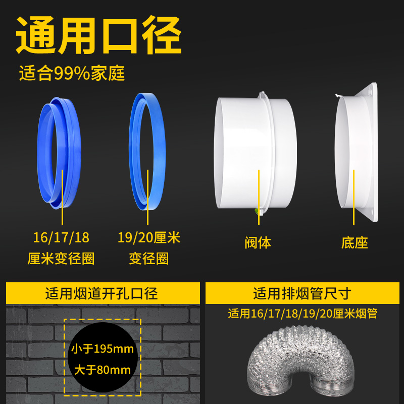 kaqalk油烟机止逆阀公共烟道止回阀厨房专用逆止阀防烟宝通用防味