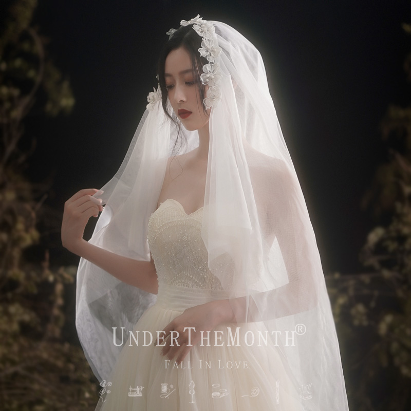 月下相恋白色蓬蓬短款 头纱森系复古拍照道具结婚领证旅拍头纱头饰