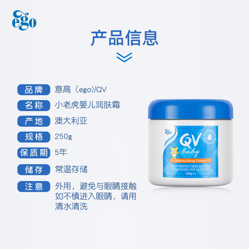 2瓶婴儿保湿 QV小老虎面霜250g 澳洲Ego 润肤霜宝宝身体乳 自营