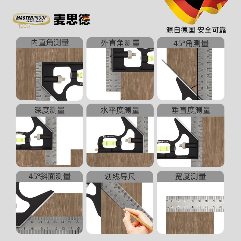 活动角尺高精度不锈钢木工专用90度水平直角尺45多功能组合角度尺