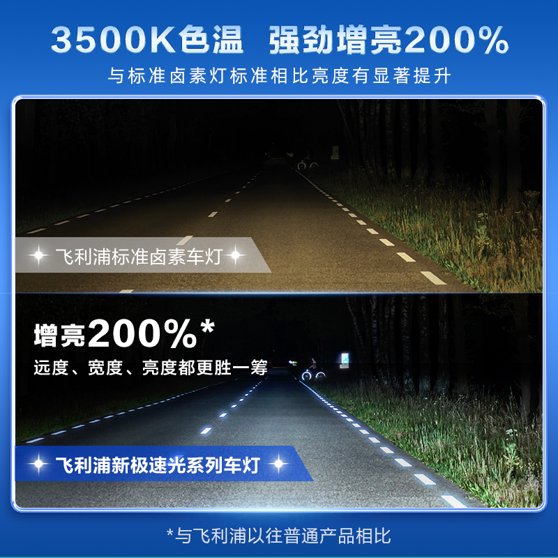 飞利浦新极速光H7 H4汽车卤素大灯灯泡近光远光远近一体增亮200%
