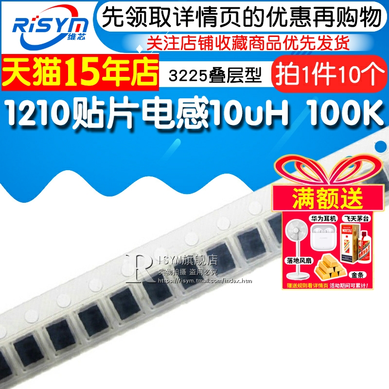 100K 10uH 10个 1210贴片电感3225叠层型SMD片状功率电感 Risym
