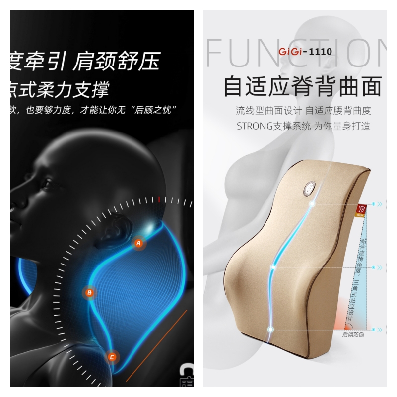 GiGi汽车头颈枕腰靠垫套装 记忆棉支撑腰背肩膀疲劳驾驶座腰靠靠垫