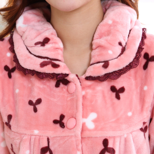 红豆情侣泡泡绒睡衣加厚男士 法兰绒女珊瑚绒防螨抗静电家居服套装