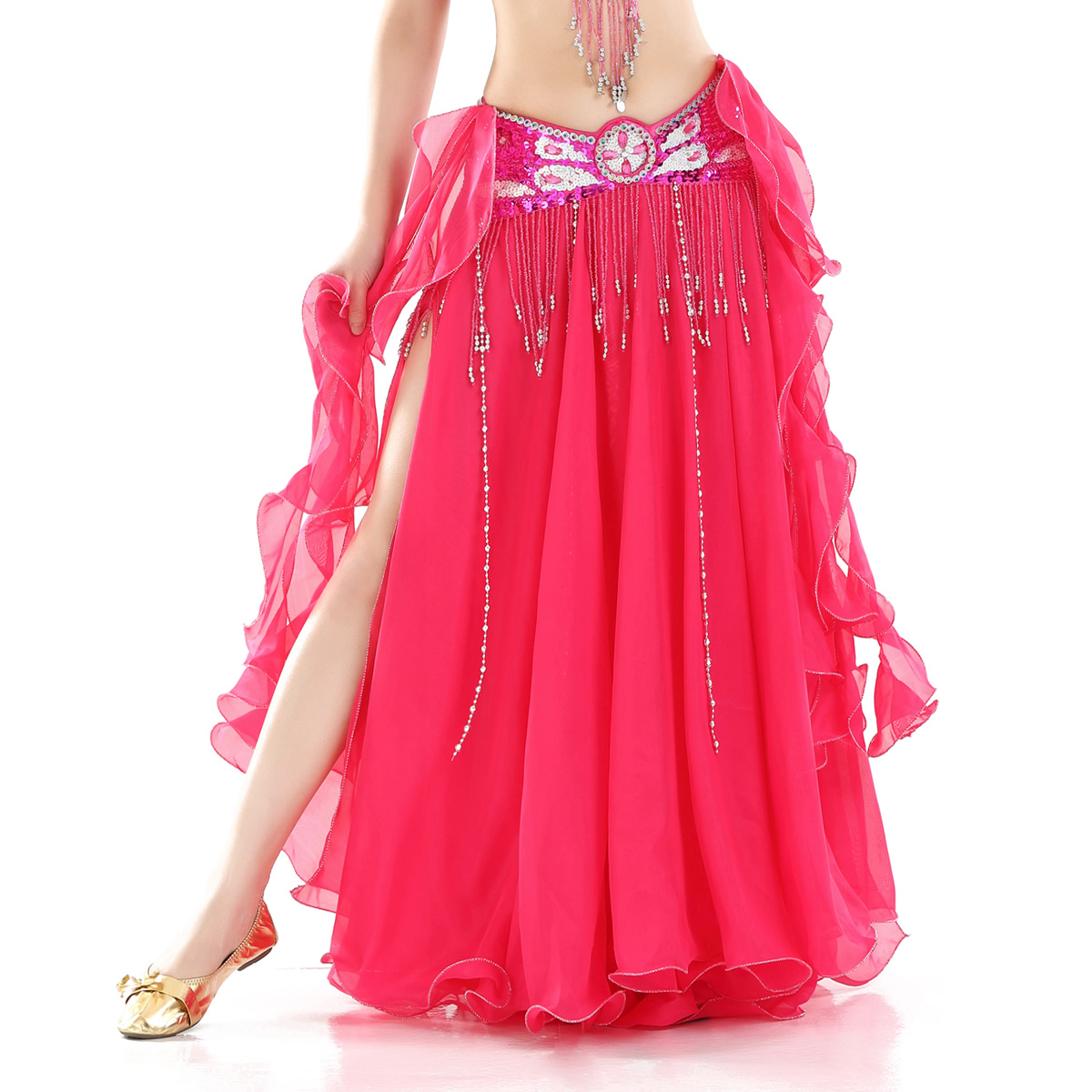 舞娘 雪纺卷叶双开叉耳朵裙肚皮舞裙肚皮舞纱裙肚皮舞高开叉裙子