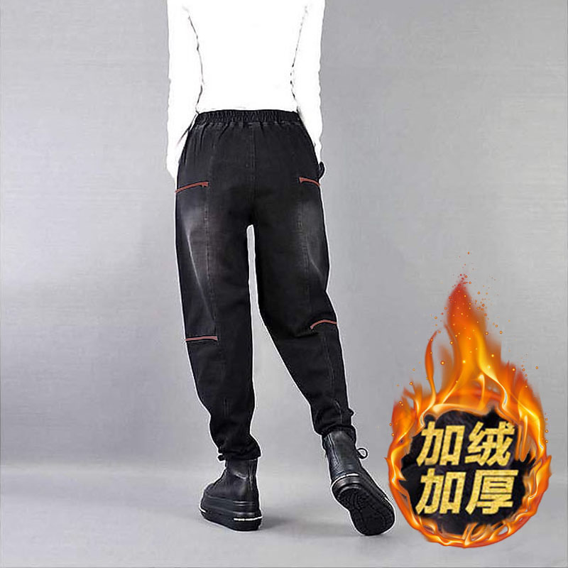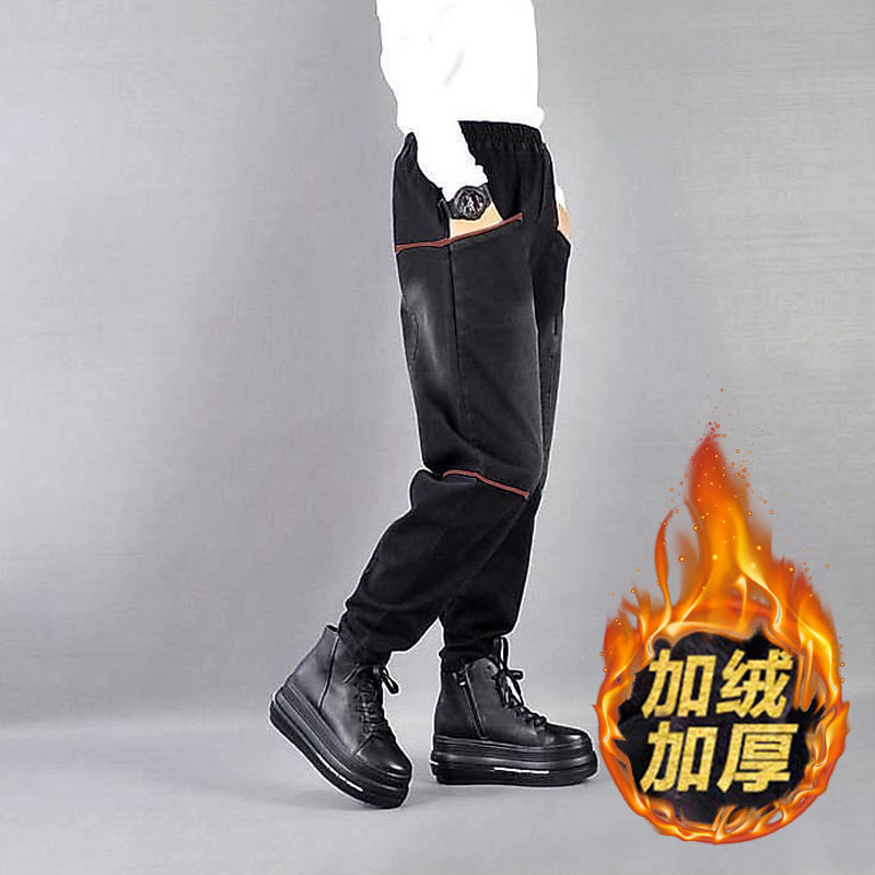 卷边萝卜裤 2023秋冬加绒女裤 宽松显瘦小脚裤 哈伦裤 女潮 高腰时尚