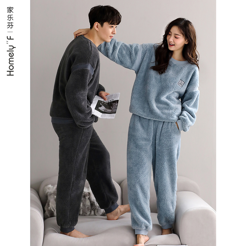 冬天珊瑚绒套装 情侣睡衣男士 秋冬款 法兰绒加厚加绒家居服女式 冬季