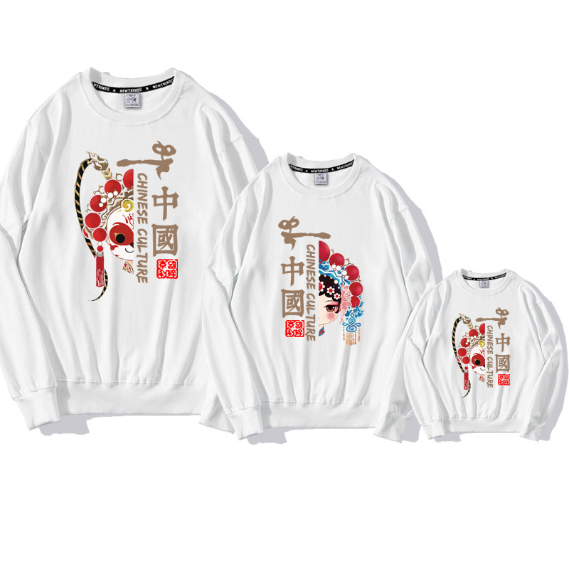 京剧国潮戏曲中国风过年新年亲子装 衣服 圆领卫衣父子母女全家长袖