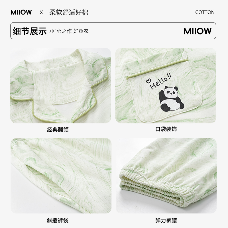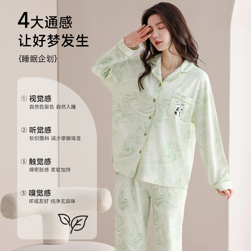 套装 宽松加大码 可外穿高级国风家居服 长袖 猫人纯棉睡衣女春秋冬款