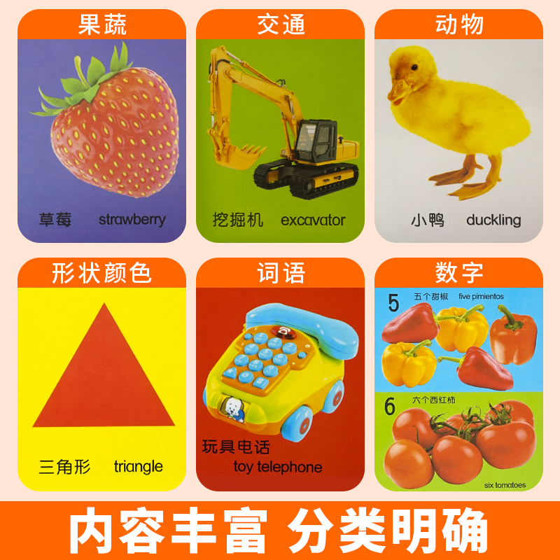 6岁儿童识字卡幼儿认字看图启蒙全套幼儿园孩子认知卡益智玩具撕不烂图书动物卡玩具书籍黑白大卡 宝宝彩色卡片识图早教卡2