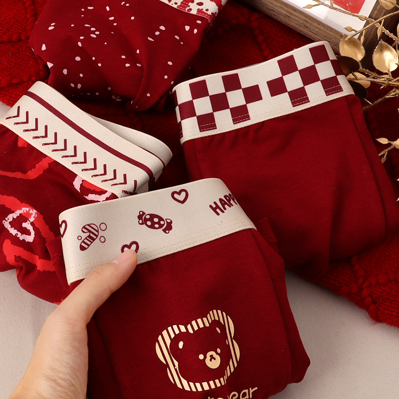 青年四角裤 SQINUSQN 喜庆棉质平角裤 内裤 男新年 狮奇诺本命年男士