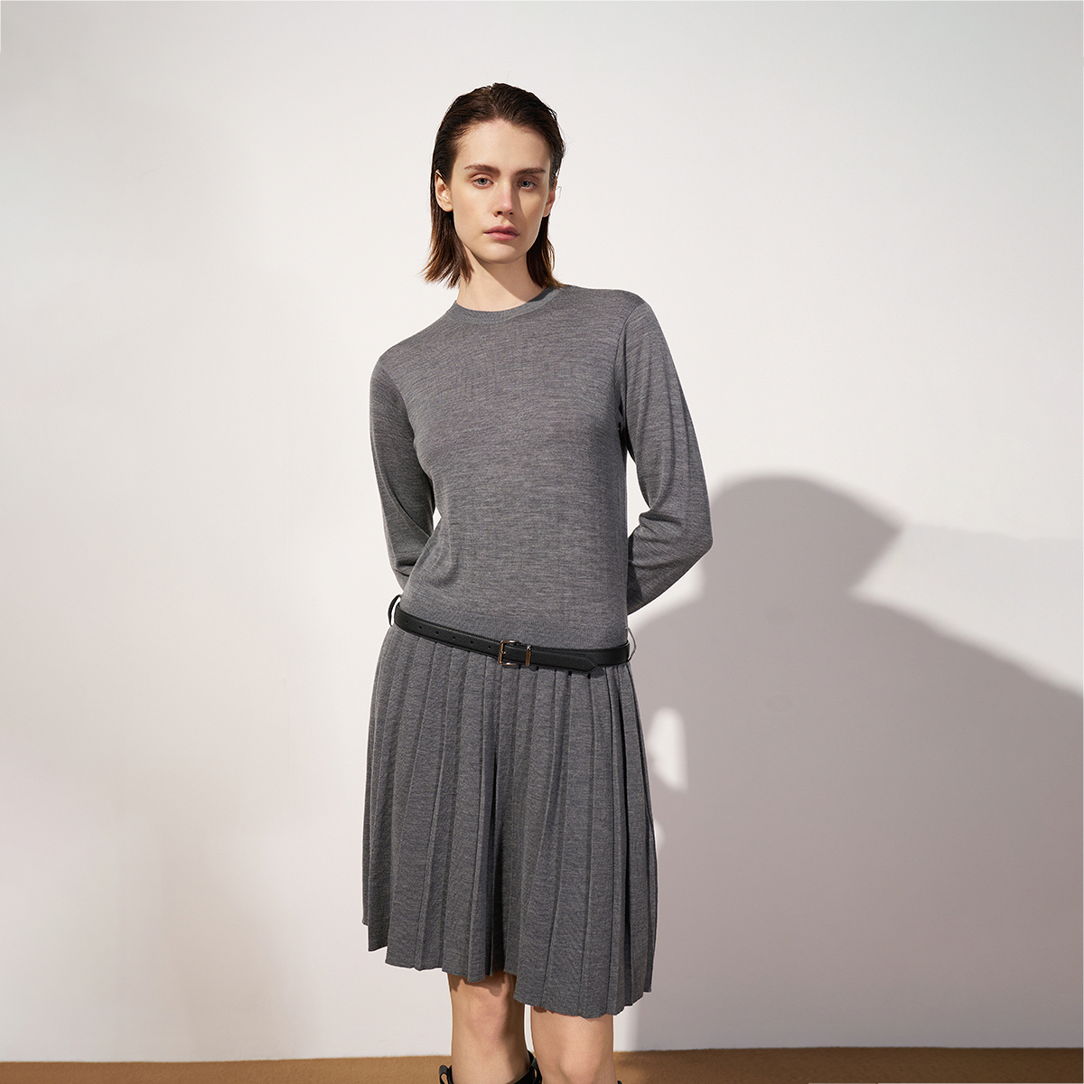 OCHIRLY欧时力澳大利亚100%美丽诺羊毛连衣裙配腰带2025秋冬尖货