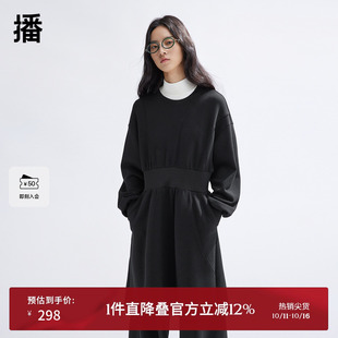 好看鱼尾裙修身 DPLAY2025年秋季 连衣裙法式 气质黑色长袖 长裙 新款