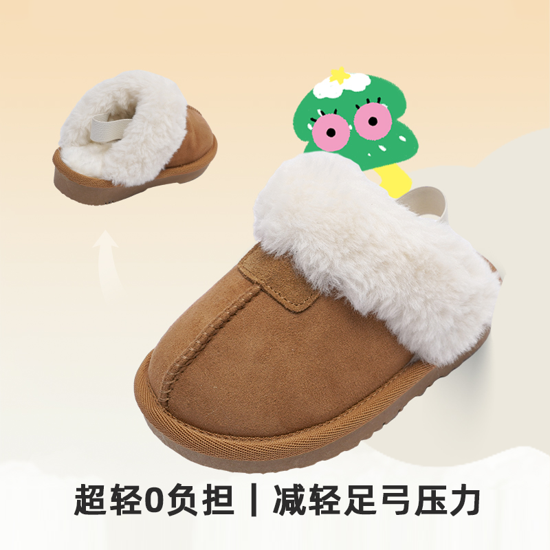 保暖棉拖鞋 加绒男童半拖女童毛毛鞋 室内家居鞋 TOPSTAR儿童勃肯鞋
