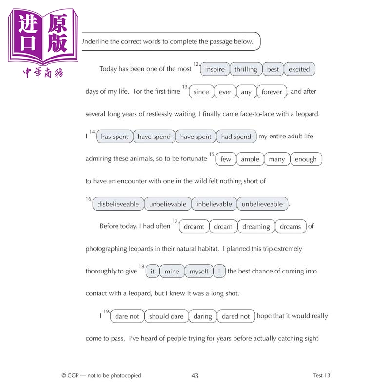 现货 Reasoning with Cloze Ages Tests 中商原版 CEM Minute Verbal Book Online 英国CGP
