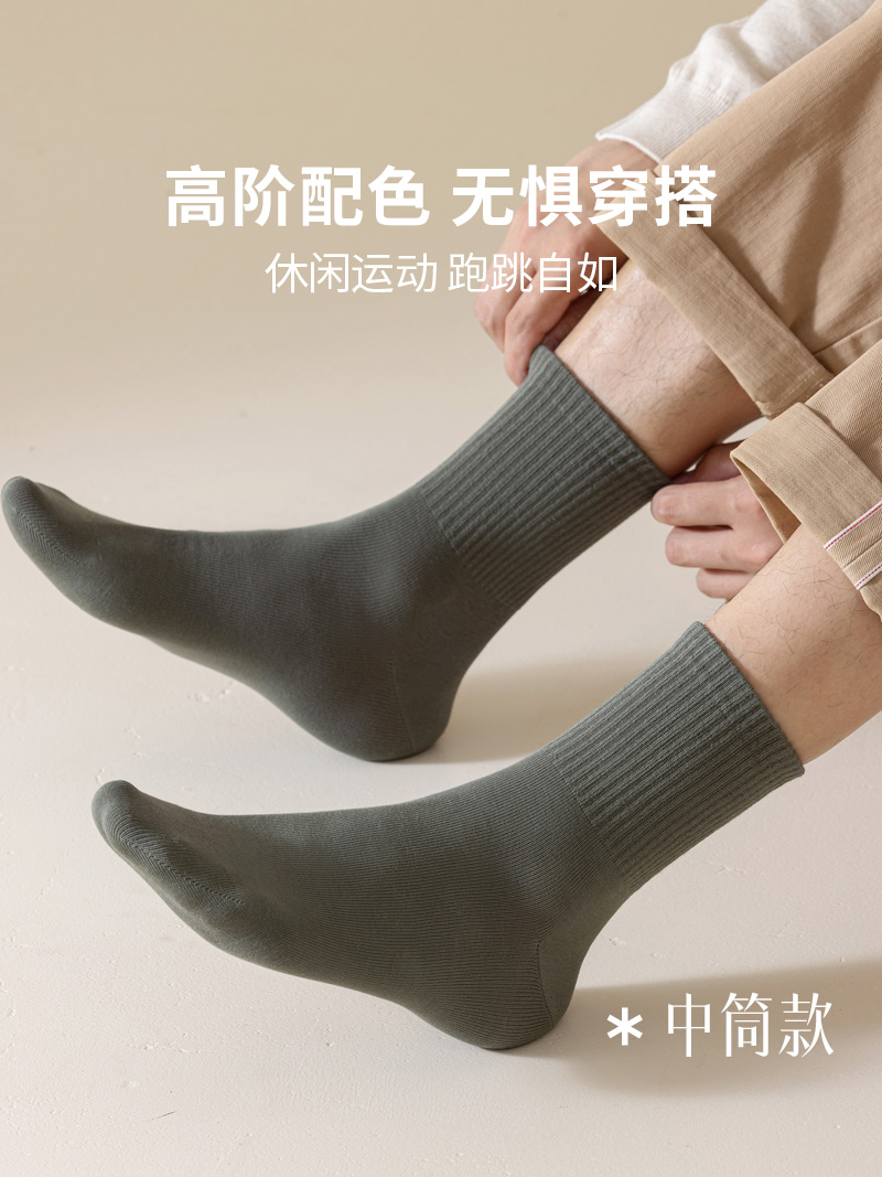 诸暨袜子男春秋季 纯色棉袜白色中筒袜 防臭短袜吸汗透气运动袜男士
