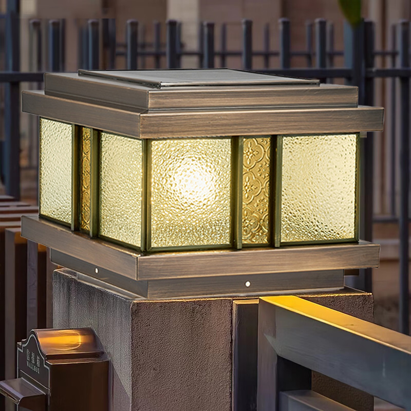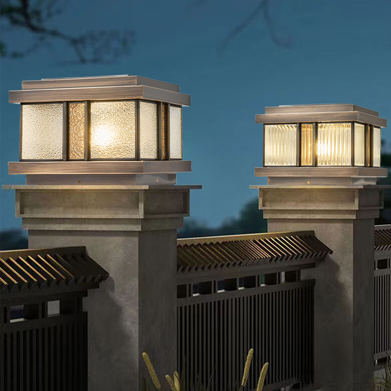 全铜柱头灯太阳能户外庭院花园别墅大门灯门柱围墙防水中式 柱子灯