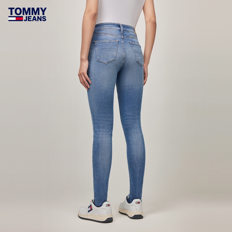 破洞中腰微弹水洗紧身显瘦牛仔裤 复古潮流经典 美式 Tommy秋冬女装