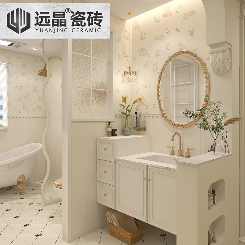 远晶 300x600奶油风卫生间瓷砖厨房墙砖猫爪阳台地砖全瓷奶白花砖