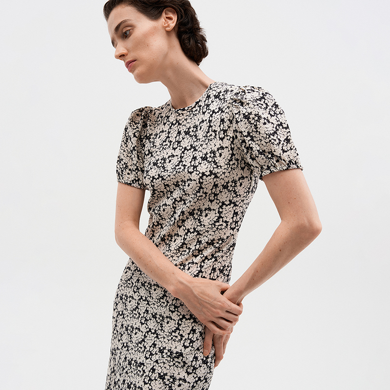 圆领中长款 浪漫碎花新中式 连衣裙 BLUE轻奢优雅女装
