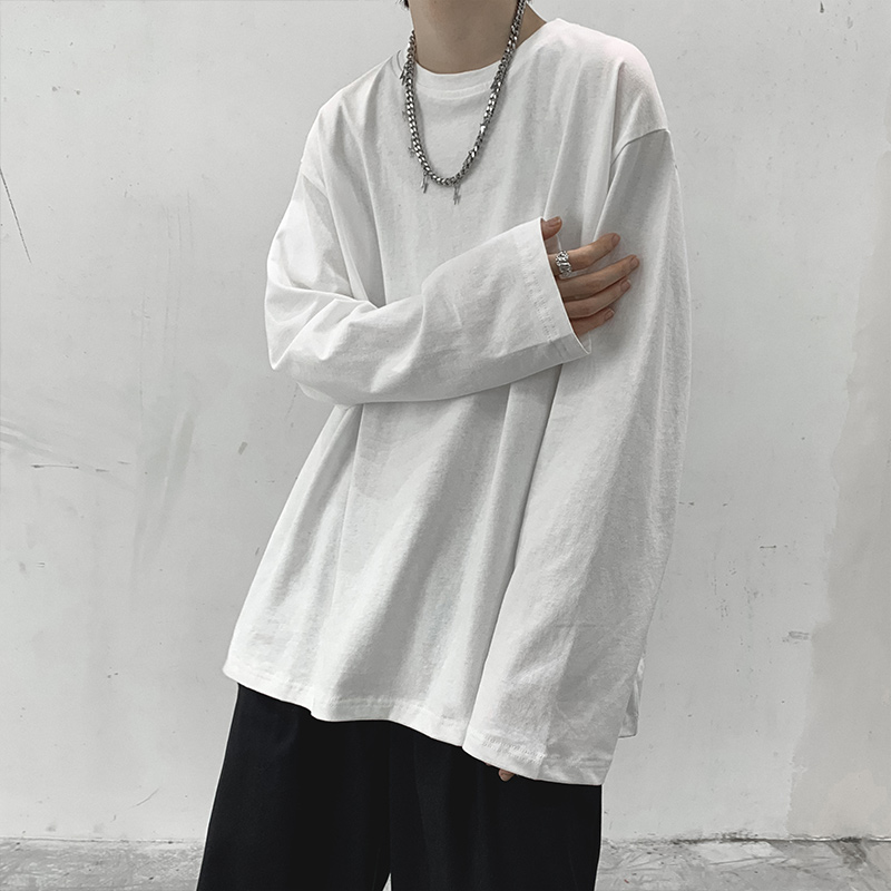 oversize内搭上衣 T恤男秋潮牌宽松休闲打底衫 重磅基础款 纯色长袖