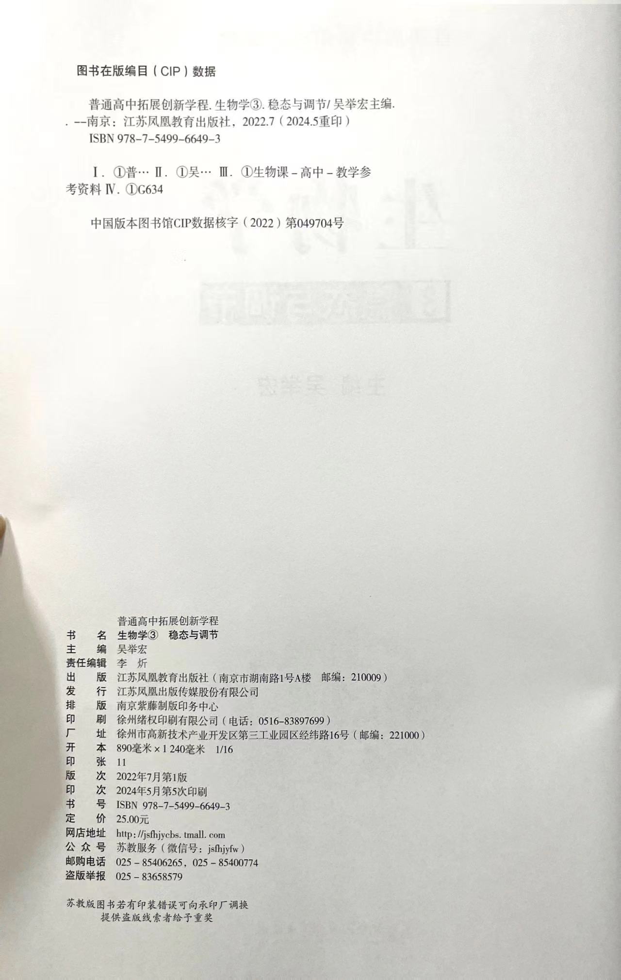 社 教学教辅资料课本讲解练习题江苏凤凰教育出版 新版 普通高中拓展创新学程高中生物学3稳态与调节苏教版