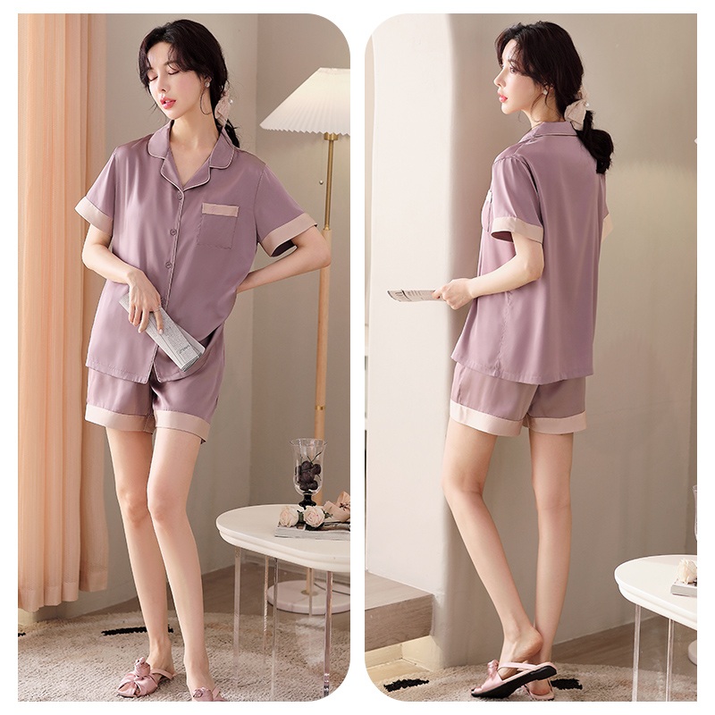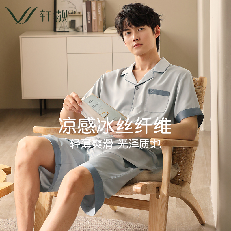 薄款 丝绸家居服套装 冰丝短袖 仿真丝男款 2025新款 情侣睡衣女士夏季
