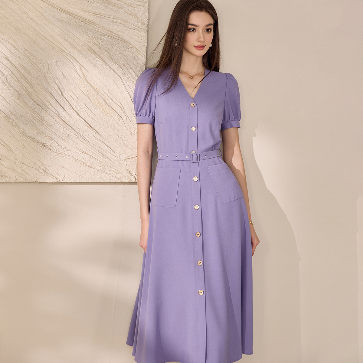 粉蓝衣橱2025秋冬新款 BBLLUUEE 雅致通勤收腰连衣裙 简约大气