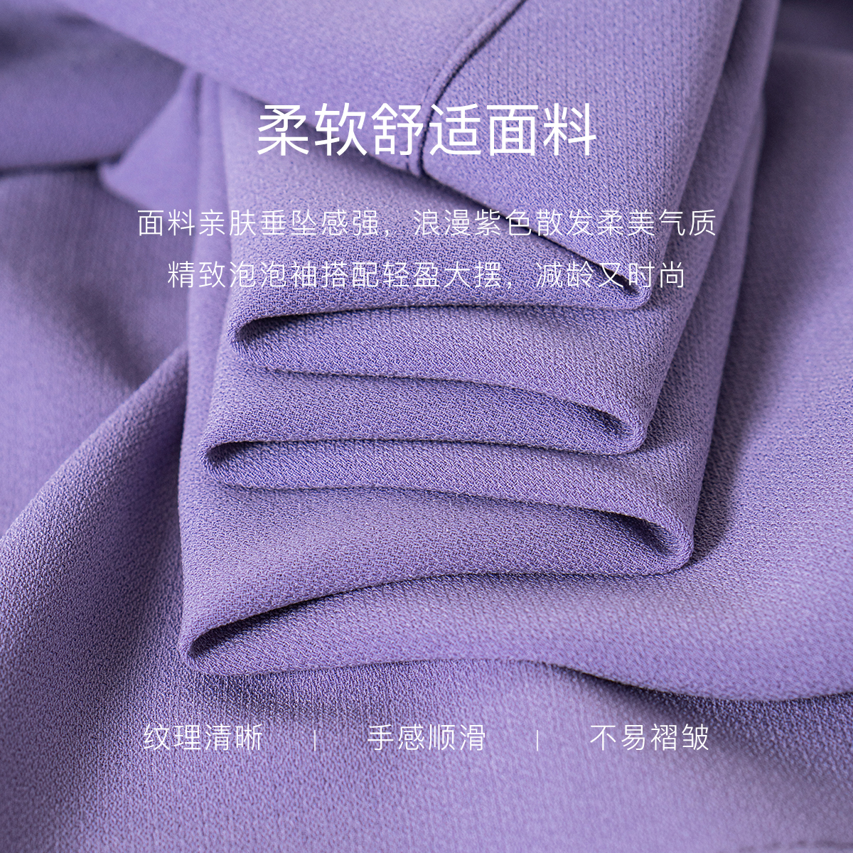 a字裙 温柔风褶皱掐腰漂亮法式 拼接蕾丝紫色斜肩长袖 连衣裙女秋季