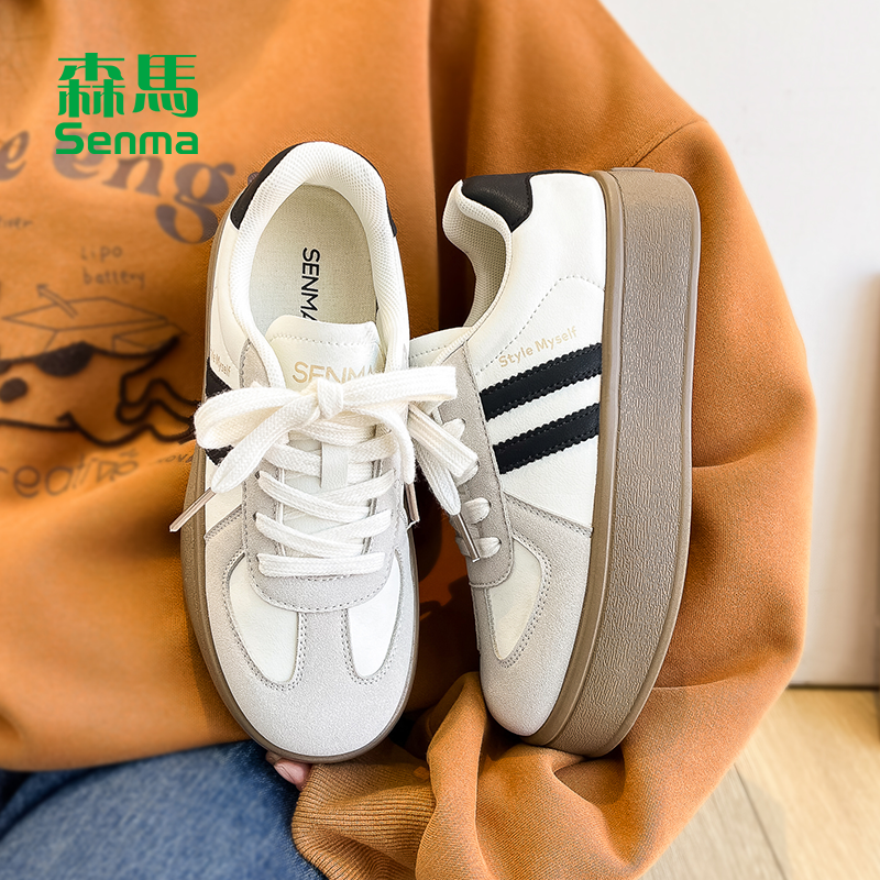 小白鞋 2025年秋冬新款 爆款 百搭厚底休闲鞋 森马女鞋 子女板鞋 德训鞋