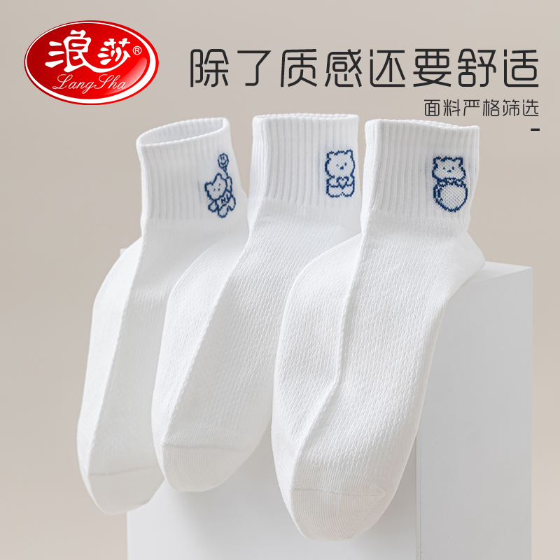 亲相见袜子女纯棉防臭中筒袜秋季 吸汗7a抗菌透气无骨白色女士短袜
