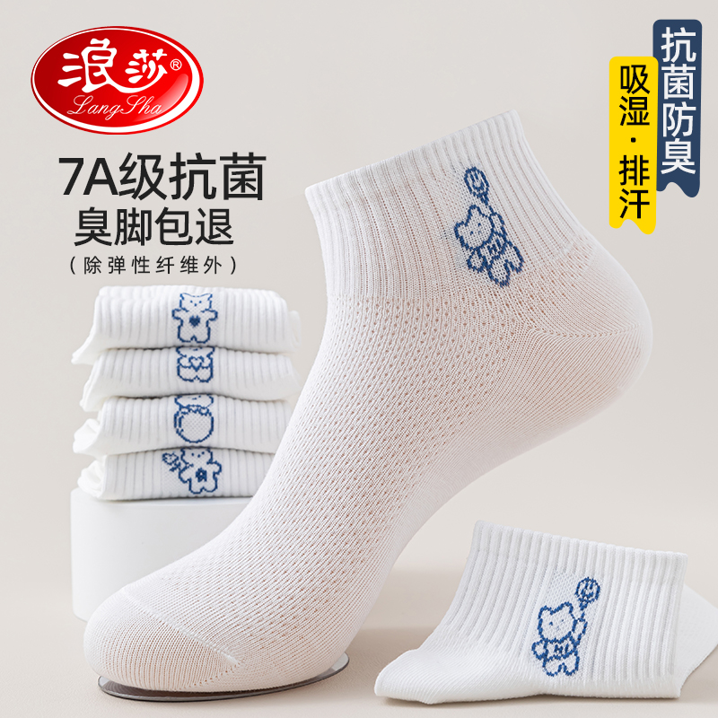 7a抗菌运动男生船袜 新款 七匹狼纯棉袜子男士 短袜防臭吸汗全棉四季