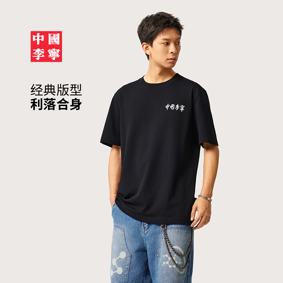 简约情侣装 李宁短袖 官方半袖 夏季 黑色体恤纯棉白色运动T恤女 男士